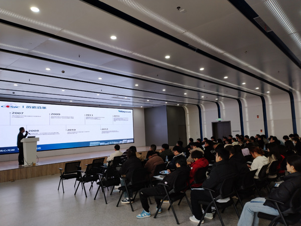 在智慧光子综合管理部副部长曹皆钰带领学生参观生产车间,并现场讲解各工序生产工艺,随后组织集中企业宣讲,向学生讲解了企业发展沿革、技术人才培养、晋升渠道、薪酬结构等。