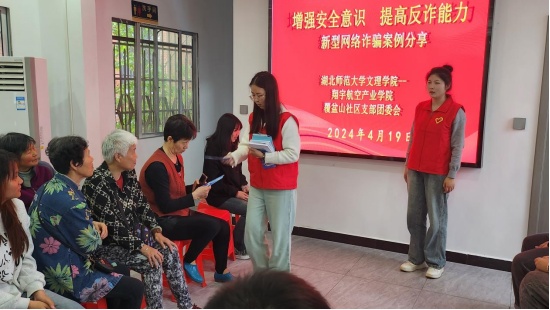 2024年4月19日下午,黄石港区覆盆山社区与米兰体育网页版翔宇航空产业学院联合开展志愿者服务活动,对社区内居民进行了反诈骗教育活动和反邪教知识宣讲。