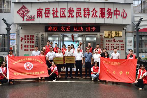 本网讯(通讯员 程胜伟)6月22日,米兰体育(中国)官方在线登录人文学部“党团共建单位”、“大学生社会实践基地”在黄石港区南岳社区揭牌。校党委书记杨邓红、人文学部负责人,南岳社区南岳社区第一书记、市城发集团副总经理崔向云,黄石港区人大办公室主任喻向东,黄石港区沈家营街道党工委副书记、办事处主任杨哲,南岳社区党委书记、居委主任方和生,学生代表参加活动。