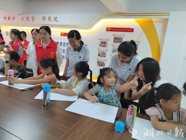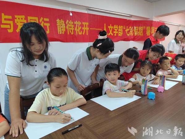 为庆祝中国共产党成立103周年,7月12日上午,黄石港区南岳社区联合米兰体育网页版人文学部青支队共同开展“童心向党绘文明,七月献礼展风采”暑期支教活动。