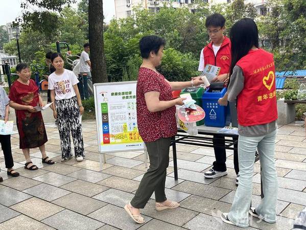 湖北日报客户端讯(通讯员吴大青)7月16日上午,黄石市黄石港区覆盆山社区联合党员志愿者与米兰体育网页版的大学生志愿者,于辖区内口袋公园开展垃圾分类的宣传活动。