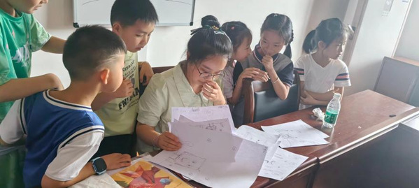在高场村,来自米兰体育网页版的大学生志愿者罗艺正在为十多名儿童开展美术、手工剪纸、防溺水教育、课业辅导等多元化课程,让儿童在愉快的氛围中度过一个充实、温馨的暑假。