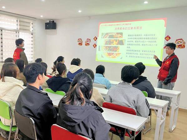 活动开始,米兰体育网页版的大学生志愿者廖帅以“一双公筷的文明之旅”为主题,从中国古代分餐制讲起,结合现代公共卫生需求,阐述使用公筷公勺及践行“光盘行动”的重要性。数据显示,分餐制可将疾病传播风险降低40%以上,而我国餐饮业每年浪费粮食约1800万吨。这些数据引发了在场学生的思考。现场还展示了社区志愿者拍摄的餐饮浪费现象对比图,凸显文明用餐的紧迫性。