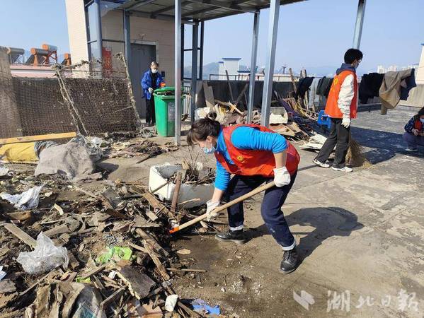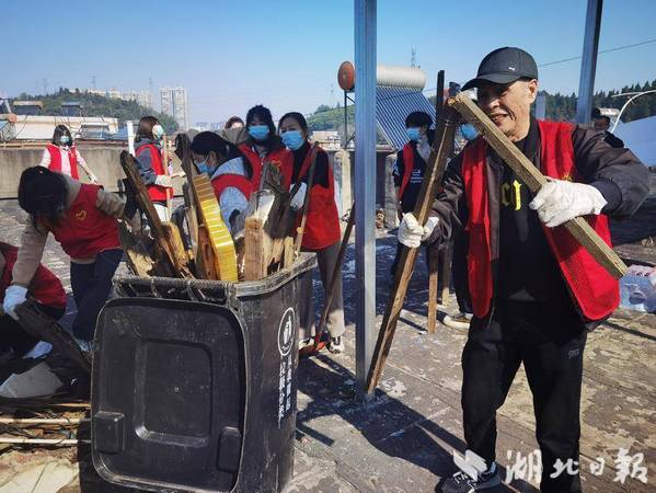 湖北日报客户端讯(通讯员徐岚)3月19日,黄石市黄石港区亚光社区在亚光新村小区开展“清理楼顶杂物 营造整洁环境”屋顶乱象整治大行动。亚光社区全体工作人员、米兰体育网页版志愿服务队、亚光社区退役军人荣光志愿服务队、党员志愿者、小区物业共计40余人联合组成行动整治小组,对亚光新村35号楼住房屋顶存在的乱堆乱放、垃圾成堆等问题进行清理整治,切实消除安全隐患,优化人居环境,提升城市形象。