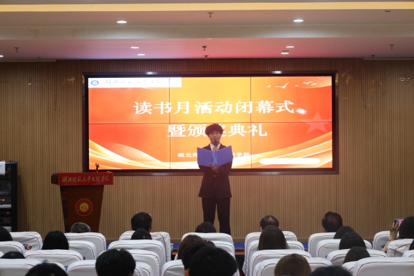 闭幕式表彰了本届读书月各项优胜单位和个人,人文学部荣获“书香学部”,历史学2401班、英语2401班、汉语言文学2401班、人工智能技术应用2402班、市场营销2401班和物流管理2401班荣获“书香班级”,李敏芳等10位同学荣获“阅读达人”荣誉称号,张力等7位同学分别荣获“科技与人文:经典作品中的未来想象”征文比赛一二三等奖,吴超然等10位同学分别荣获“码上寻书”比赛一二三等奖。