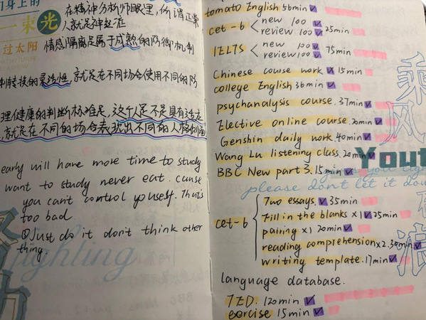 焦虑是每个考研学生都要面对的挑战,离考试时间越近,就越焦虑。但朱艺欣找到了应对方法:将焦虑分解到日常。