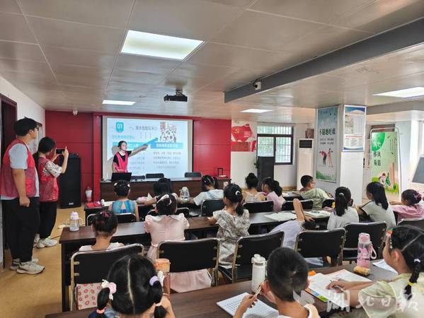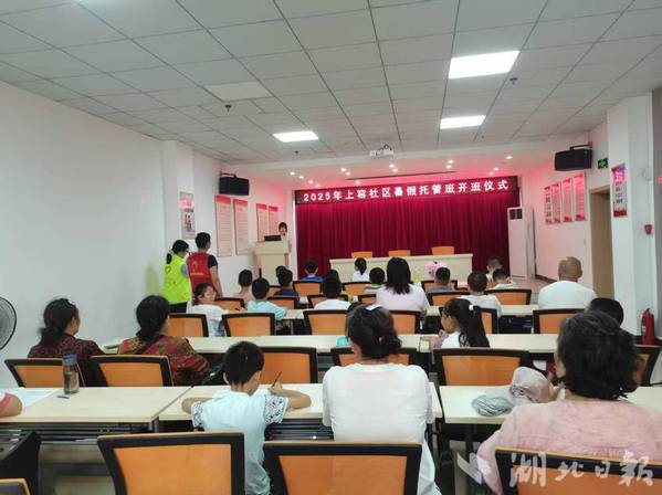 在南岸社区暑假“爱心托管班”开班仪式上,志愿者们做了自我介绍,分享“爱心宣言”,表达陪伴孩子快乐成长、筑牢安全防线的决心,他们将在暑期为孩子们提供作业辅导、德智体美劳教育等多元服务。