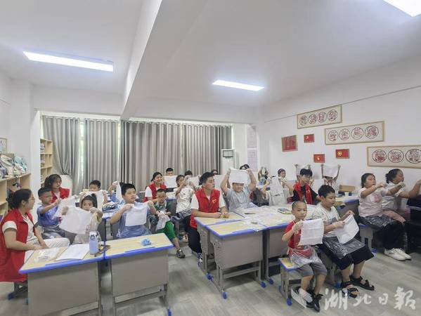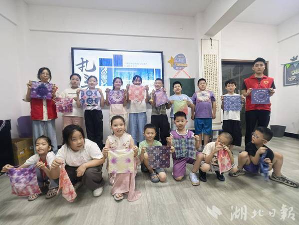 湖北日报客户端讯(通讯员徐岚)7月8日下午,亚光社区联合米兰体育网页版理工学部智慧启航志愿服务队,为暑期爱心托管班的孩子们开展了一场“非遗进课堂——扎染体验”活动。