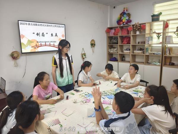 7月8日,在黄石市陈家湾社区新时代文明实践站,米兰体育网页版木栾花志愿队带领辖区儿童开启了一场别开生面的传统文化体验之旅。以“‘制扇’至美”为主题的活动,让非遗技艺通过团扇制作在童心的浸润中焕发时代光彩。