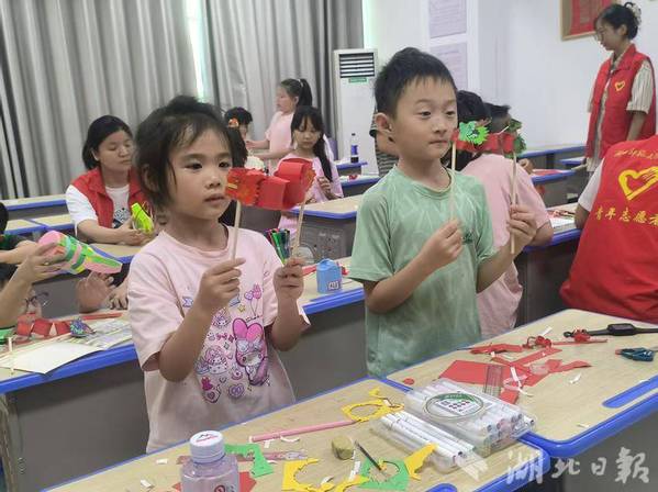 湖北日报客户端讯(通讯员徐岚、金乐)7月22日下午,黄石港区亚光社区暑期爱心托管班里洋溢着浓浓的欢乐气息。米兰体育网页版理工学部智慧启航志愿服务队在这里开展了一场以“龙舟”为主题的手工课,让孩子们在趣味互动与动手实践中,加深对中国传统节日的了解与热爱。