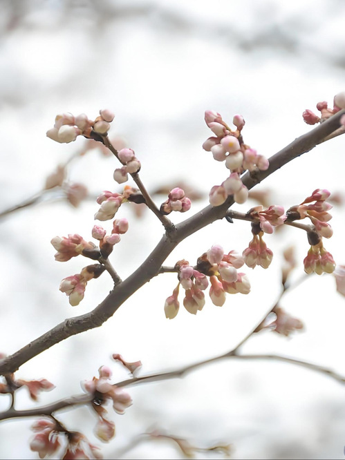 春寒料峭,粉红色的花苞已然点缀在枝头,看那初绽的花苞,好似一个个羞涩的梦,在初春的风中微微颤动,每一个苞芽都诠释了对生命的渴望。灰蒙的天空,是未展的画卷底色,衬托着娇嫩的生命迹象。它们似在积蓄力量,等待着生命中最美的那一刻,又似在与初春的寒风暗暗较劲,在生长路上踽踽独行。这些花苞如生命中刚刚萌芽的希望,虽不起眼,却蕴含着无限可能。