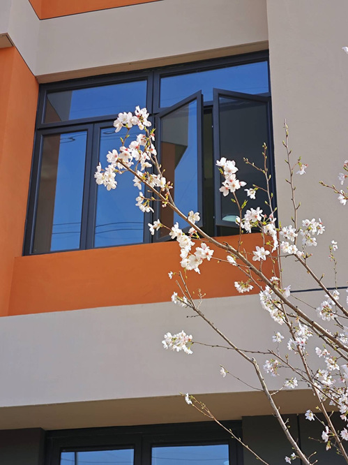 樱花与教学楼相映成趣,洁白的花朵在橙色与灰色的建筑前舒展,窗户似是通往另一个世界的大门,而樱花则是这个世界最美的点缀。我们在忙碌的日子里,常常会忽略身边的风景,而此刻的樱花却提醒着我们放慢脚步,去感受生活与岁月的温柔,珍惜每一个当下。