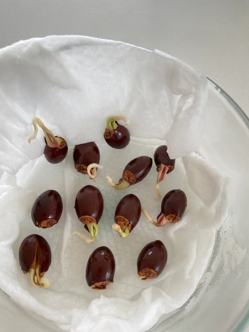 宿舍的窗台上,一个透明塑料盒里用湿润的纸巾浸泡着几颗荔枝核。它们原本只是果肉食尽后的残骸,褐黑坚硬,毫不起眼。搁在书桌一角。起初,它们像沉睡的褐色石子,毫无生气。我并未期待什么,毕竟宿舍的窗台阳光有限,而我只是想看看,这几颗被遗忘的种子,能否在这样简陋的环境里醒来。