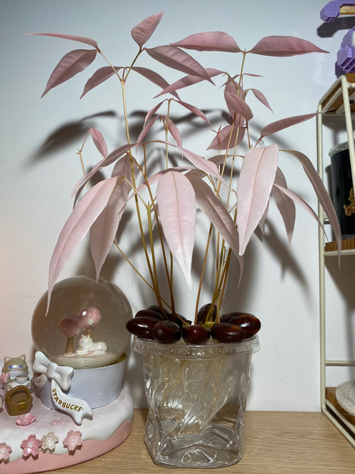 或许人生也是如此。我们常常抱怨环境不够好,条件不够优渥,可生命本身就有一种倔强——只要给予一点点可能,它就会找到自己的出路。就像这些水培的荔枝,在清水的禁锢里,依然长出了粉红色的诗行。