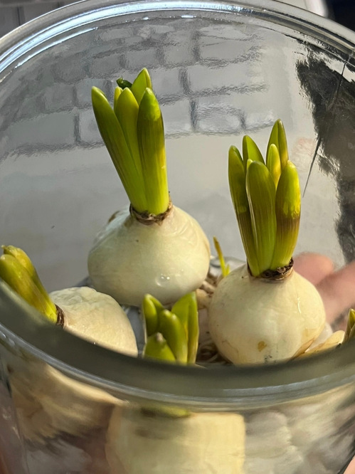 二月底,我把三枚郁金香种球沉进玻璃瓶。入瓶后沉睡的模样,总让我想起古寺里老僧敲木鱼的声响,钝钝的,却在寂静中含着某种待破的禅意。
