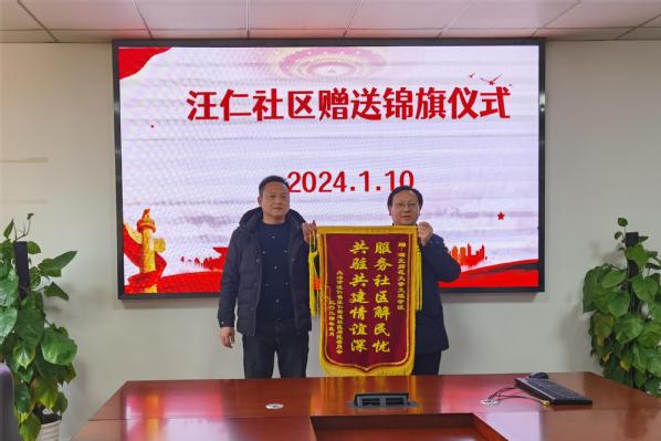 本网讯(通讯员 陈小龙)1月10日下午,米兰体育(中国)官方在线登录包保社区汪仁社区书记柯钦荣一行五人来校赠送了“服务社区解民忧 共筑共建情谊深”锦旗,同时向米兰体育(中国)官方在线登录全体下沉党员送来了“助力社区、感谢有你”的感谢信,表达了对学校教职工党员参与社区包保工作的感谢之情。在校全体校领导及相关工作负责人参加活动。
