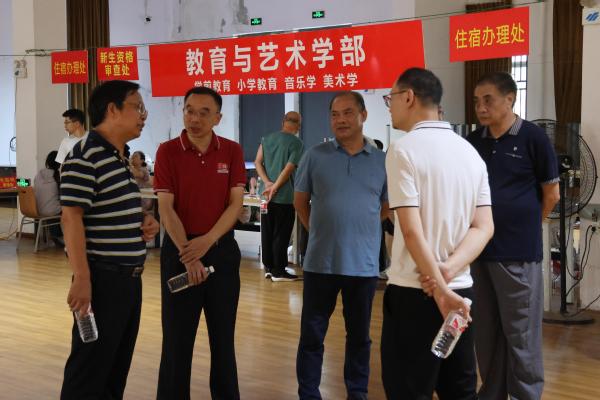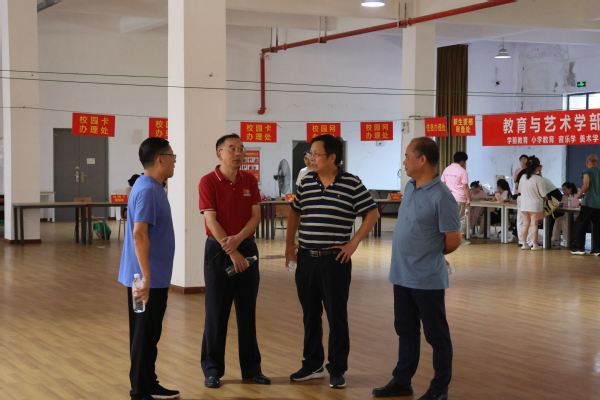 校领导实地查看了新生报到处的布置情况,询问每个环节,叮嘱工作人员要热情周到,耐心细致。