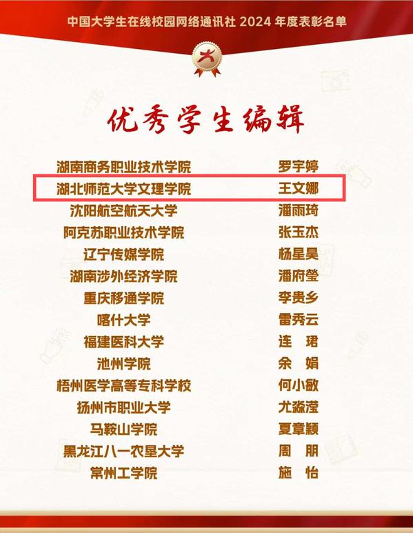 本网讯 12月26日,由教育部中国大学生在线评选的2024年度校园新媒体表彰名单正式公布,米兰体育(中国)官方在线登录大学生记者团师生喜获“优秀校网通站”“优秀学生编辑”“校网通优秀指导老师”“年度优秀内容榜单”四项荣誉。