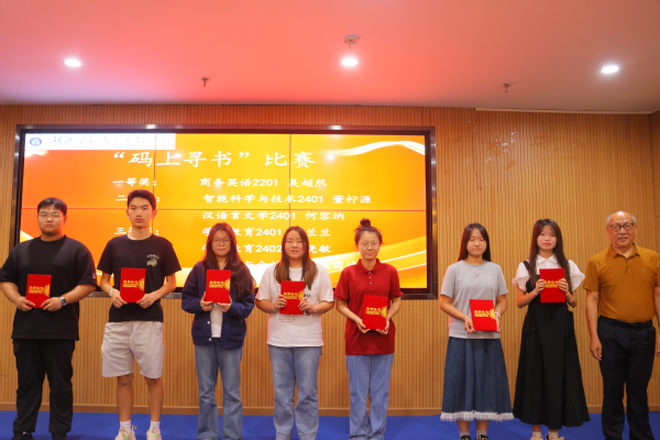 闭幕式表彰了本届读书月各项优胜单位和个人,人文学部荣获“书香学部”,历史学2401班、英语2401班、汉语言文学2401班、人工智能技术应用2402班、市场营销2401班和物流管理2401班荣获“书香班级”,李敏芳10位同学荣获“阅读达人”荣誉称号,张力等7位同学分别荣获“科技与人文:经典作品中的未来想象”征文比赛一二三等奖,吴超然等10位同学分别荣获“码上寻书”比赛一二三等奖。