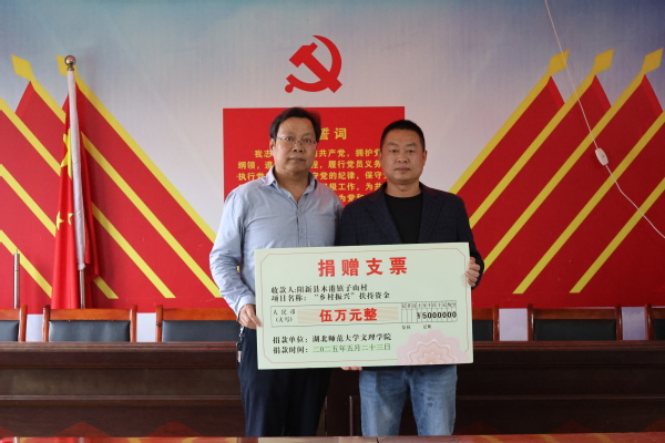在村党群活动中心,杨之毛代表学校向子山村捐赠5万元乡村振兴专项资金。