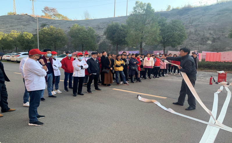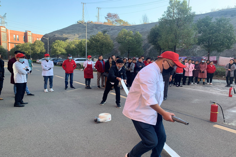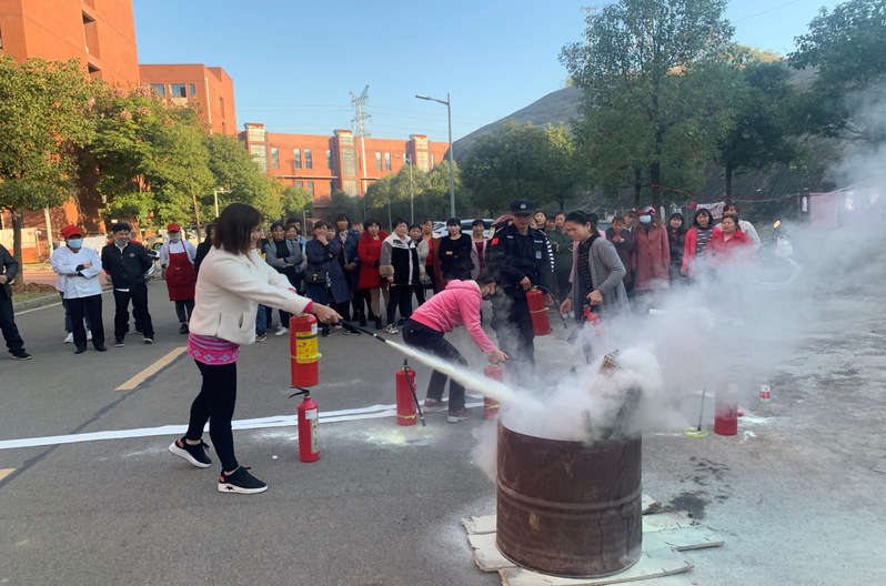 首先对消防器材的使用进行培训。主要讲解了火灾发生的原因、怎样预防火灾、火场逃生基本知识,食堂油锅着火的正确处理方法以及如何正确报警等方面。同时,演示了灭火器、消防栓、灭火毯的正确使用方法和注意事项。