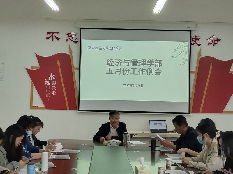 2022年5月19日下午2点半,经济与管理学部于2号实验楼213会议室召开了学部5月份工作例会,学部全体教职工参加,此次会议由学部主任商树松主持。