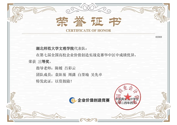 经济与管理学部于2024年4月20日上午9点组织学生参加第七届全国高校企业价值创造实战竞赛,本次竞赛吸引了全国数百所院校的数百支队伍参赛,在吕彩云、陈媛两位指导老师不辞辛苦的带领下,米兰体育网页版代表队凭借出色的表现获得华中区三等奖。