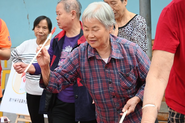 此次活动以“青春伴夕阳”趣味运动会的形式进行,大学生志愿者们带领老人们一起进行了投壶、套圈、吹乒乓球等趣味游戏。充满乐趣的互动活动,让老人们身心愉悦,乐在其中,活动现场处处洋溢着欢声笑语