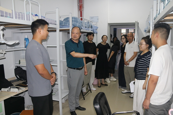 走访过程中,领导老师们始终面带亲切笑容,与新生们交流,氛围轻松而温馨。“刚到学校还习惯吗?”“食堂的饭菜合口味吗?”“宿舍生活有什么需要帮忙的?”许光书记一句句关切的询问,不仅细致了解新生们的校园生活适应情况,更耐心倾听大家对未来专业学习的规划与期待。针对新生提出的宿舍设施维护、餐饮口味选择等实际问题,领导老师们逐一回应,及时解答新生的顾虑,瞬间拉近了师生间的距离。