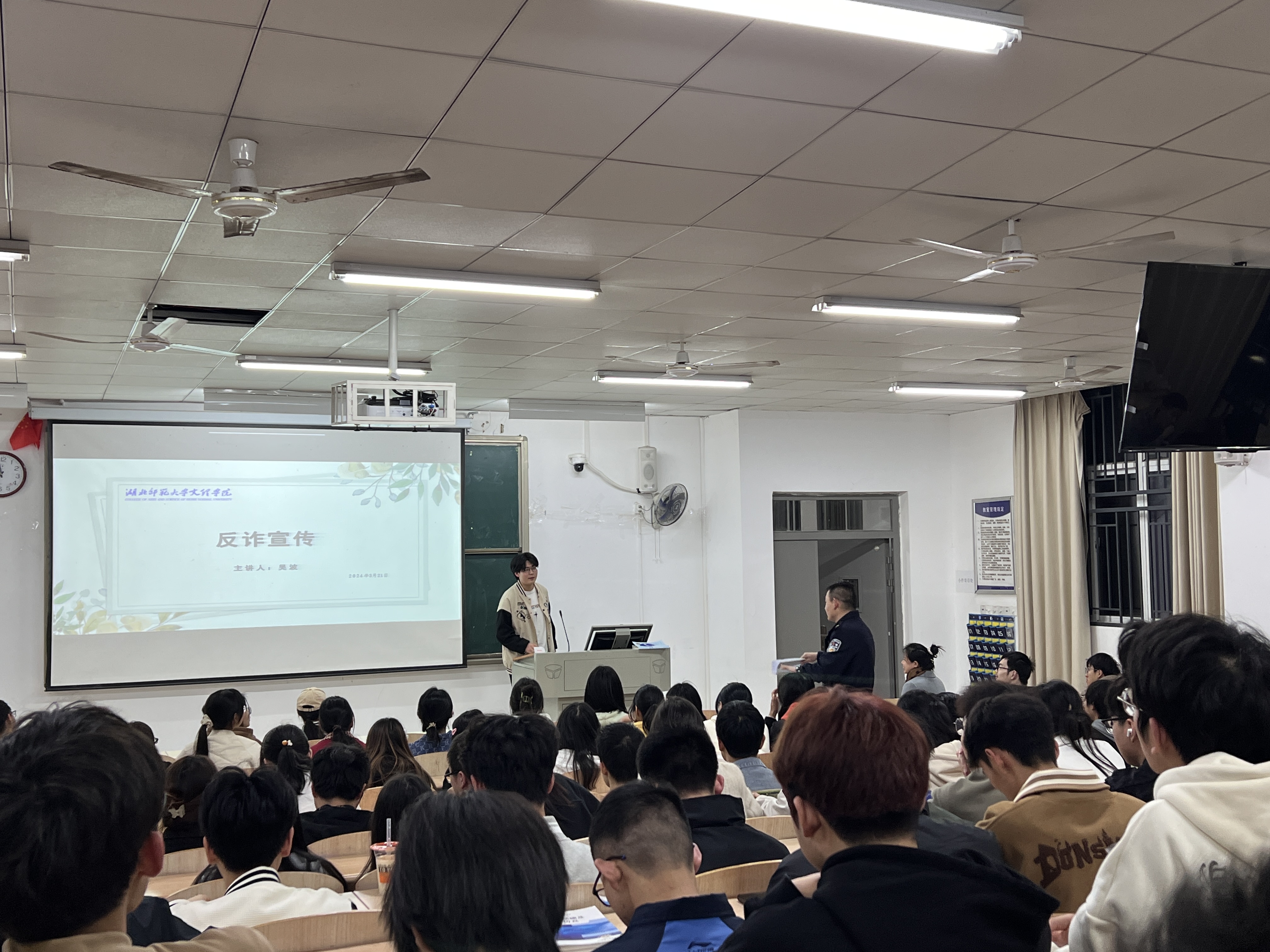 吴警官通过分析身边鲜活的电信诈骗案例,向青年学子讲述了网络刷单、AI智能诈骗、网上购物诈骗等电信诈骗的特点、惯用手段及反诈知识和技巧,引导青年学子擦亮眼睛,守住自我教育、自我管理的第一道关口。