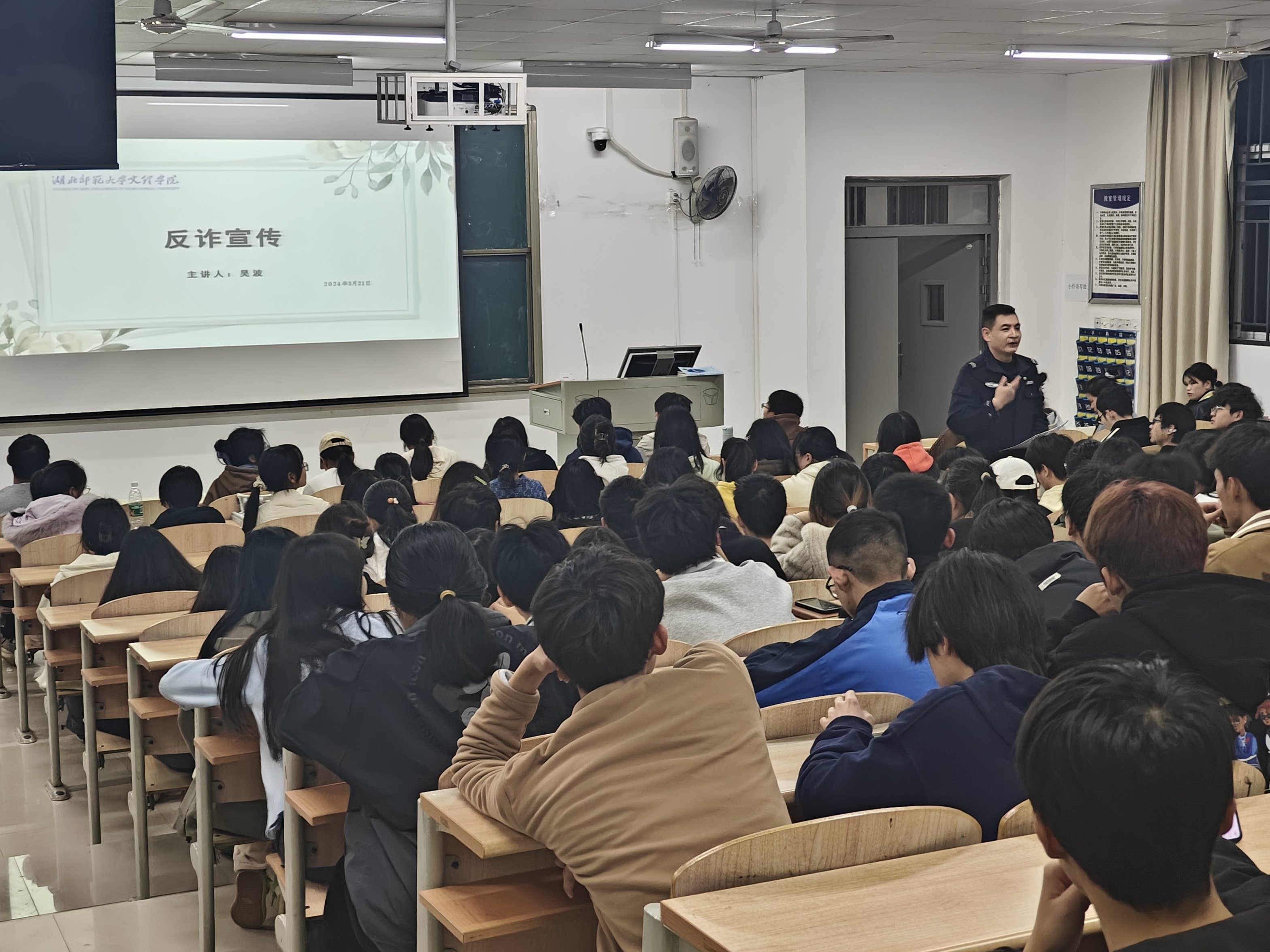 为深入推动米兰体育(中国)官方在线登录创建平安校园工作,不断提升广大师生防诈意识和防骗能力,3月21日晚上7时,理工学部特邀汪仁派出所民警在教学楼1B-101,为约200名青年学子举行了“反电信诈骗”主题讲座,理工学部团总支副书记李哲昊老师,辅导员刘婉婉老师、胡兰捷老师、陆曦老师参加了活动。
