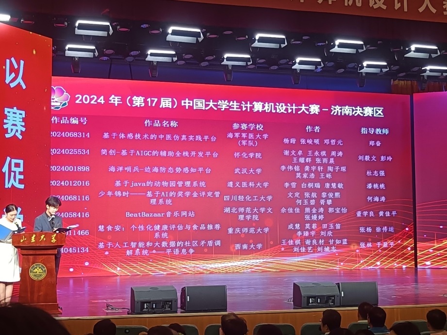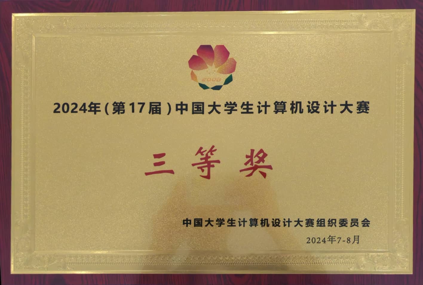 2024年第17届中国大学生计算机设计大赛于2024年7月22-26日在山东省威海市举行,本次会议由中国大学生计算机设计大赛组织委员会主办,山东大学、北京语言大学承办,并得到高寻真源(北京)科技有限公司、上海弘玑信息技术有限公司和南京秉蔚信息科技有限公司的大力支持。米兰体育网页版学生佘佳佳在理工学部董学良老师的指导下,首次获得省级比赛一等奖并在国赛决赛中荣获三等奖。