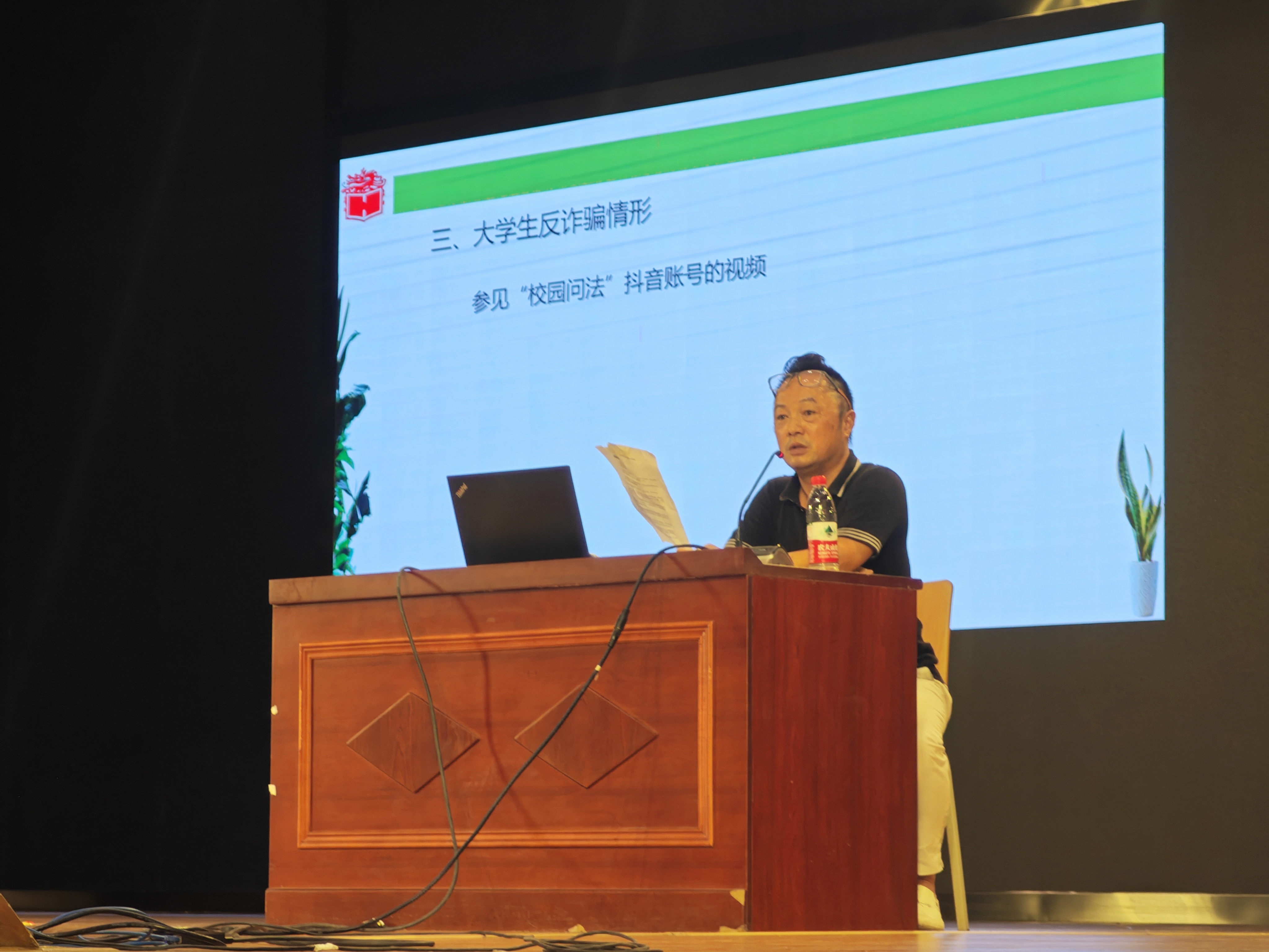 潘教授从大学生被诈骗的特点、大学生被诈骗的情形、大学生反诈骗技巧、大学生“校园问法”e盾保护计划等内容深入浅出地为同学们全面的介绍,并强调学生在日常生活中,要进一步提高安全意识,筑牢反诈防线,不要贪图小便宜,汇款前要通过电话等多种方式进行身份核实,坚守“四要”和“五不要”原则,确保自己的利益,不要试图和骗子讲诚信,切实增强自我保护能力。