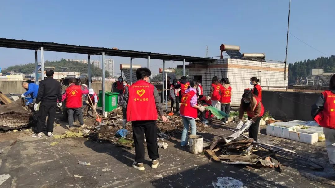 理工学部志愿者们身着整齐的服装,迅速地投入到清理工作中。他们搬运沉重的杂物,清理角落的垃圾,每一个动作都透露出坚毅和力量。并在社区志愿者的引导下高效清理,穿梭在楼顶的各个角落,不放过任何一个卫生死角。理工学部的志愿者们,脸上洋溢着青年的活力,他们用双手传递爱心,用行动践行责任,为社区的清洁贡献着自己的力量。