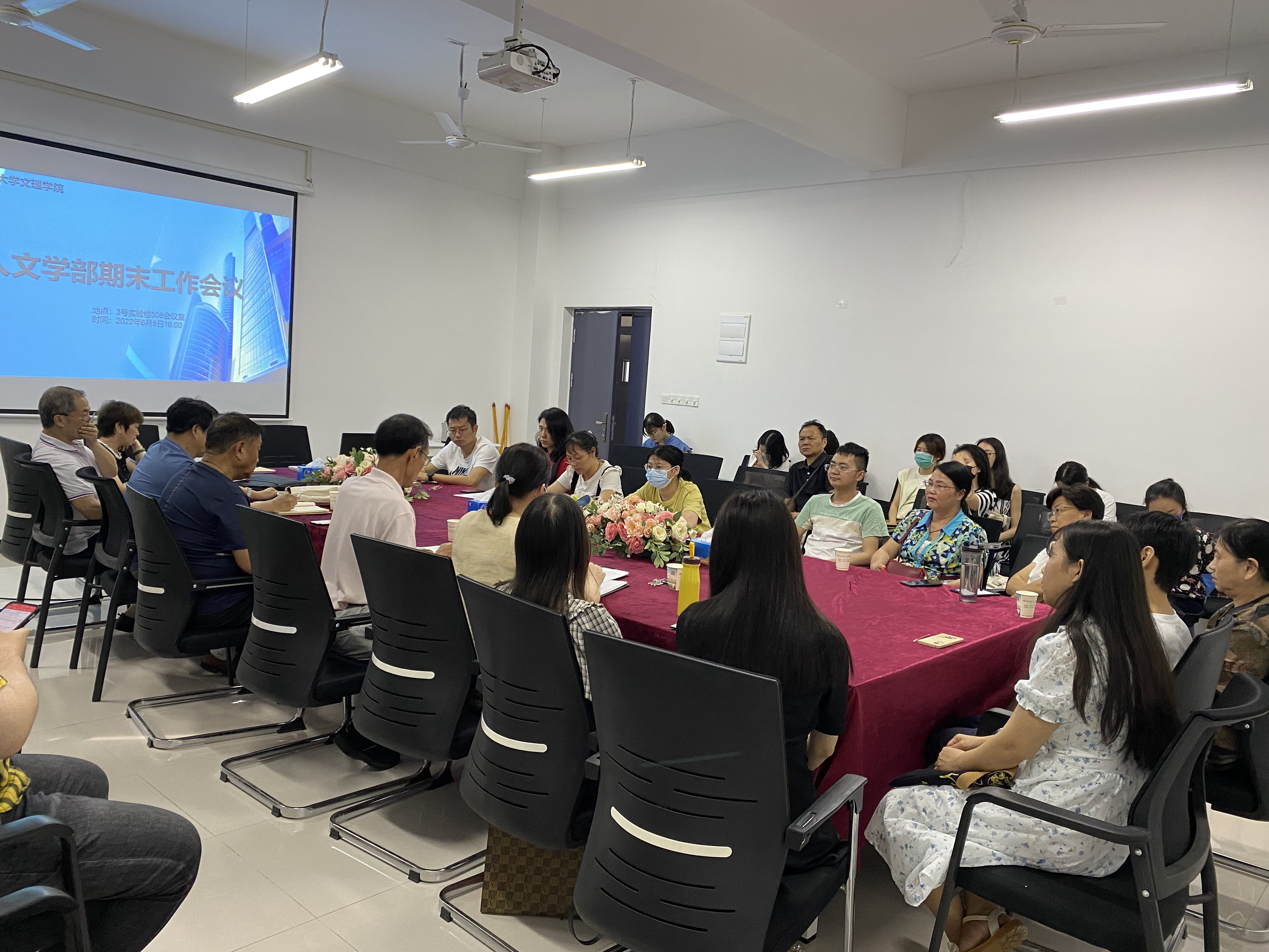 202268日下午四点,人文学部在3号实验楼508会议室召开了全体教职工期末工作会议,参加此次会议的有人文学部主任熊子延、学部副书记汪玉宝以及人文学部全体教职工。