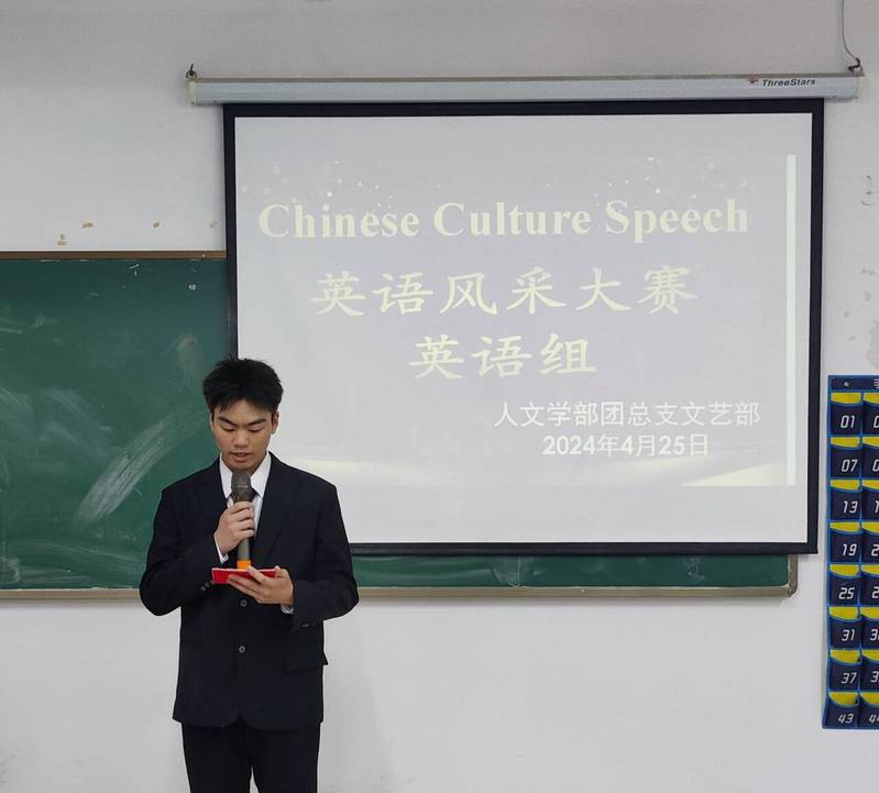 英语作桥梁,文化传世界。为丰富校园文化生活,创设良好的英语活动氛围,提升同学们对英语学习的兴趣,给学生提供展示个性、发挥特长、展现英语风采的平台,人文学部于4月25日晚在教学楼 1A201、1A203举办以“Chinese Culture Speaks”为主题的英语风采大赛。此次活动旨在激发大学生对祖国、对中华传统文化的热爱之情,提升学生的文化自信,传递中国文化正能量。