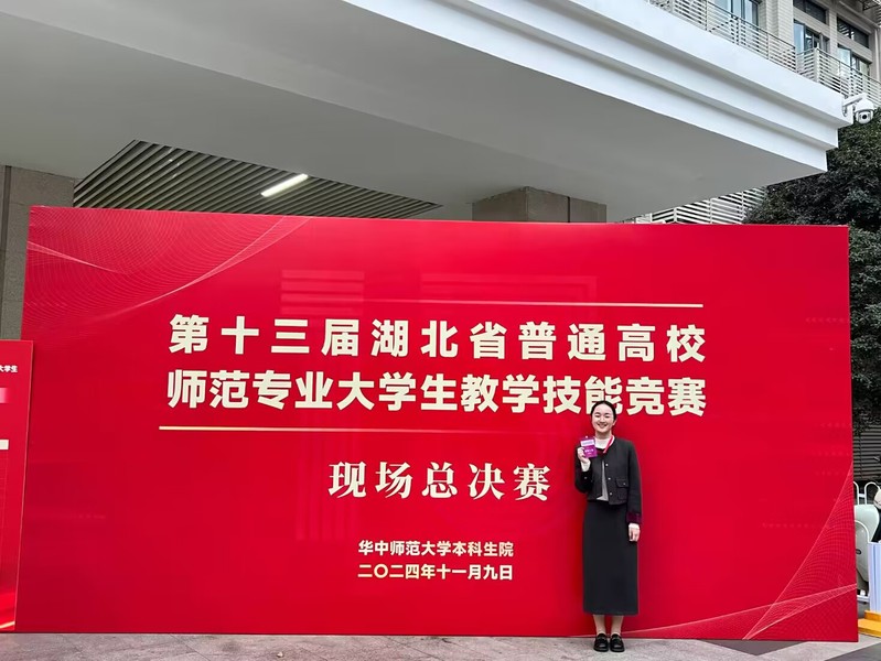 2024年11月9日,第十三届湖北省普通高校师范专业大学生教学技能竞赛决赛在华中师范大学举行,此次共有70名选手入围决赛,经教学设计、课件制作、即席讲演和模拟上课·板书环节的激烈角逐,由米兰体育(中国)官方在线登录人文学部徐唱、陈杨2位老师指导的英语专业2101班范瑶同学取得优异成绩,获得高中英语组一等奖第一名(该组一等奖仅2名)。