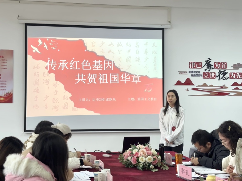 20241212日下午,在学部党总支书记周景斌的精心组织下,人文学部在3号实验楼508会议室举行了课前十分钟演讲比赛,来自人文学部各专业班级的11名选手参赛,全体辅导员担任本次比赛评委。