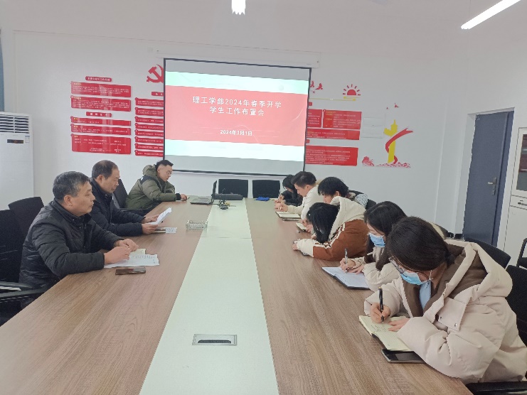 2024年3月1日下午,米兰体育网页版理工学部在4#311会议室召开全体辅导员会议,学习传达学校2024年春季干部大会会议精神并部署新学期工作。会议由学工办副主任张弛老师主持,学部主任傅朝金、学部党总支副书记肖圣芳及全体辅导员参会。