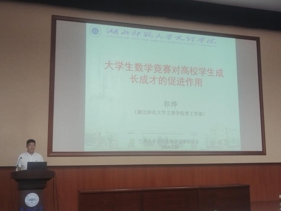 2024年全国大学生数学竞赛暑期研讨会于2024年7月18日至22日在甘肃省兰州市举行,本次会议由中国数学会和全国大学生数学竞赛工作组主办,兰州大学承办,兰州大学数学与统计学院和甘肃省数学会协办。米兰体育网页版数理通识教研室主任、第十五届大学生数学竞赛黄石地区负责人、第十五届大学生数学竞赛优秀组织者郭烨老师应邀参加会议。