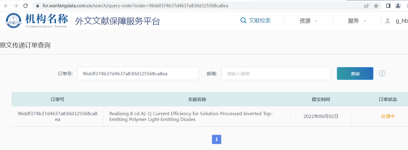 1.输入网站https://for.wanfangdata.com.cn/或在图书馆首页的“共享资源搜索”下进入万方数据外文文献保障服务平台。