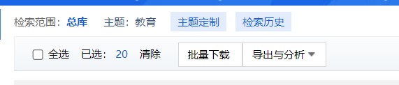 批量管理检索历史,可先单击全选或勾选检索式前复选框,再点击“取消”或“删除”按钮,对已选检索式进行批量取消勾选或批量删除的操作。