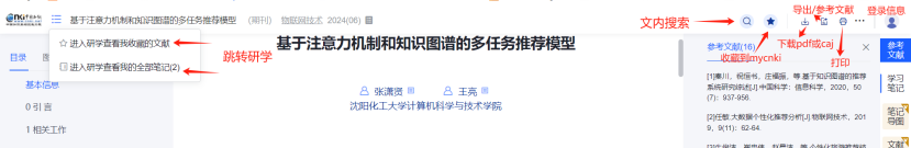 (5) 全新升级文献知网节,优化页面布局,首屏揭示节点文献的内容特征及可读性,构建以单篇文献为节点的世界知识网络,刻画以节点文献为中心的主题发展脉络,满足用户对选定文献全面感知及主题扩展的需求。