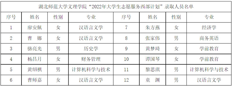 现将具体名单予以公示,公示期为2022年6月20日—2022年6月22日。公示期间如对公示名单有异议,请在公示期内以电话、信函等方式向我校团委西部计划项目办提出。为便于核实、反馈有关情况,请同时提供真实姓名和联系方式。我们将严格遵守工作纪律,履行保密义务。
