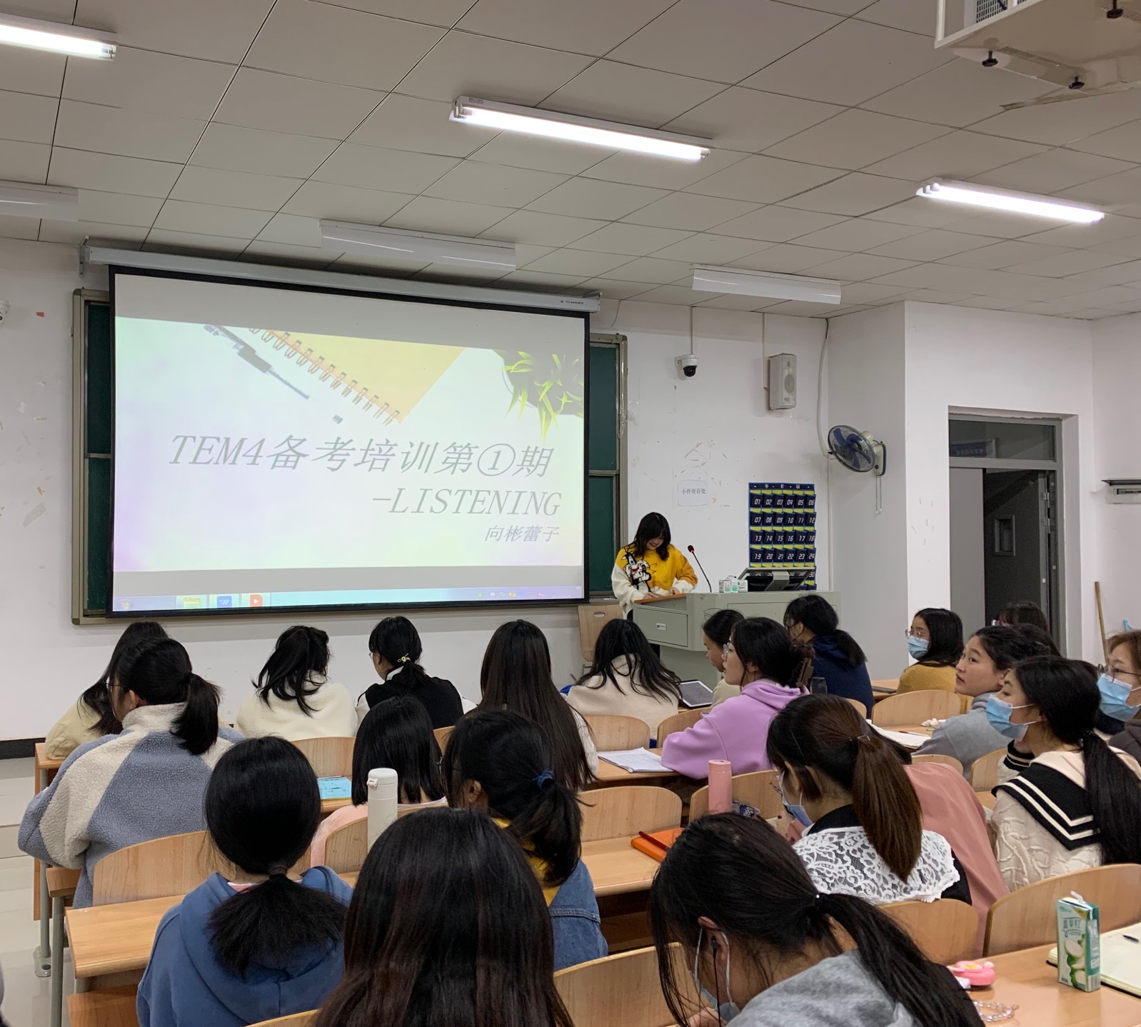 为了帮助米兰体育(中国)官方在线登录英语、商务英语专业大二学生更好地迎接专四考试,人文学部英语组老师于4月1日晚上六点半开展了专四辅导讲座之听力篇,主讲人向彬蕾子老师,主要从题型分值、听力技巧和学习建议三个层面给学生们进行讲解。讲座生动实用,学生一致好评。衷心祝愿学生们都能取得满意的成绩!