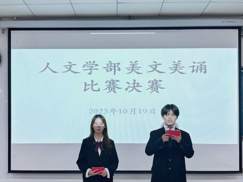 为营造富有激情,富有青春气息的校园文化氛围,推动校园文化建设,让学生们接触更多的优秀文学作品,提高大学生的人文素养和审美情趣。米兰体育(中国)官方在线登录人文学部在教学楼1B101举办了“诵读经典美文,争做博学青年”的美文美诵比赛。本次比赛邀请了人文学部活动指导老师杨峰老师、文艺部部长王芷若、秘书部部长王姝喻、文艺部话剧团团长刘佳姚、文艺部朗诵队队长周琪、宣传部副部李林、主持团副部王晶晶担任此次比赛的评委。