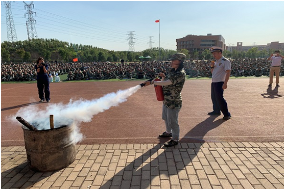 培训课上,开发区消防救援大队陈钊参谋向学校2400余名新生宣讲了消防法律、法规,结合火灾案例,对火灾特点、消防器材使用、火灾逃生自救和发生火灾如何正确报警等进行了详细讲解,并现场对干粉灭火器、消防水带的使用等进行了实地操作演示,手把手指导学生进行灭火器实地操作训练。