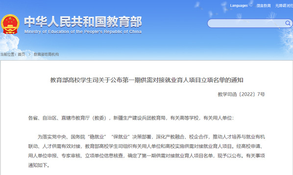 教育部第一期供需对接就业育人项目米兰体育网页版立项名单