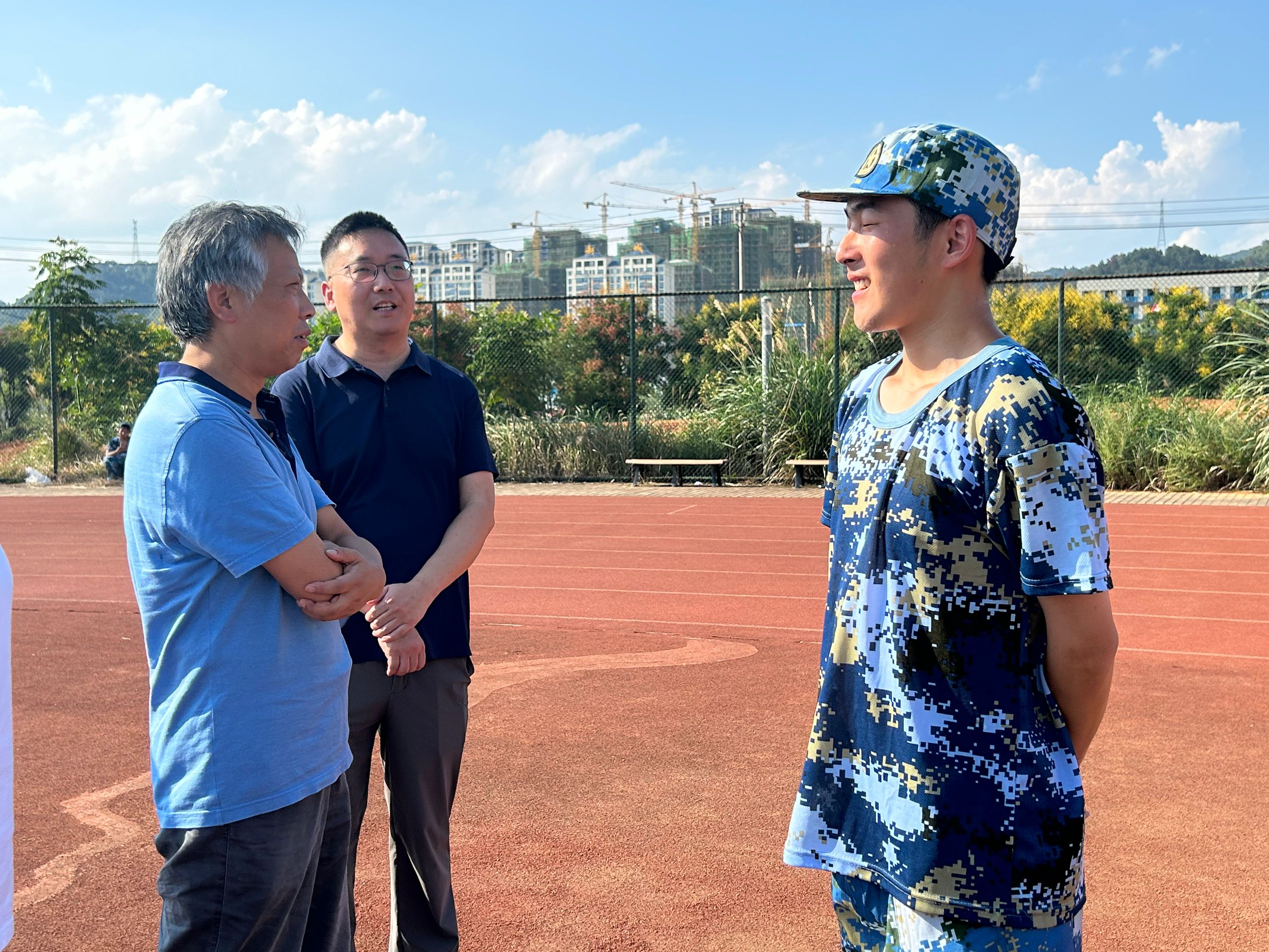 【产业学院院长许新山、副院长翁列视察学生军训情况】