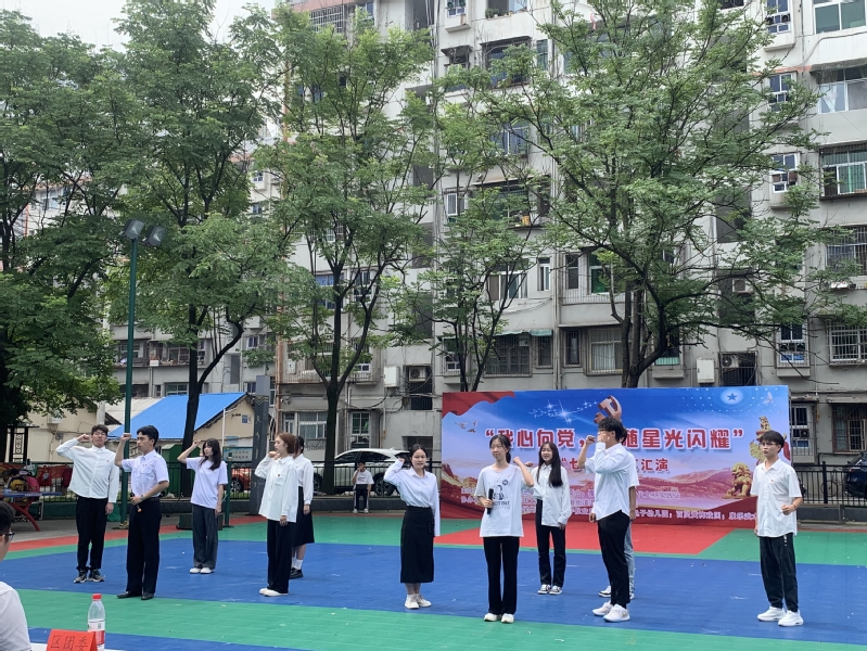 活动当天早上,先为居民们开展了“我心向党,追随星光闪耀”庆“七一”文艺汇演。此次文艺汇演精彩纷呈,居民们的欢笑与感动贯穿始终。金龟子幼儿园小朋友们的舞蹈《红星闪闪》拉开了汇演的序幕,紧接着黄梅戏和太极等中华优秀传统文化节目轮番上阵,中间穿插由米兰体育网页版的学生们带来的各种红色爱党爱国主题的相声、朗诵、小品、歌曲等形式多样的节目,最后到场领导和所有参演人员一起合唱《没有共产党就没有新中国》。